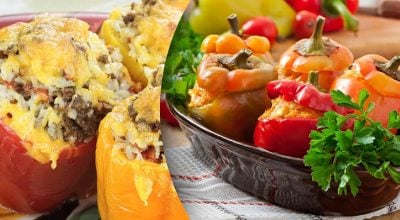 Gefüllte Paprikaschoten – Rezept / Collage: My, Foto: depositphotos.com/
