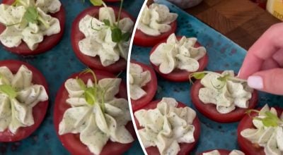 Ein Rezept für einen sehr leckeren Tomatensnack. Link kopiert Schnelle Vorspeise, die zum Star der Tafel wird / Collage: My, Foto: Screenshots aus dem